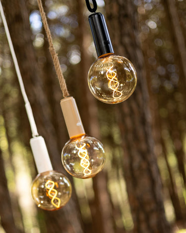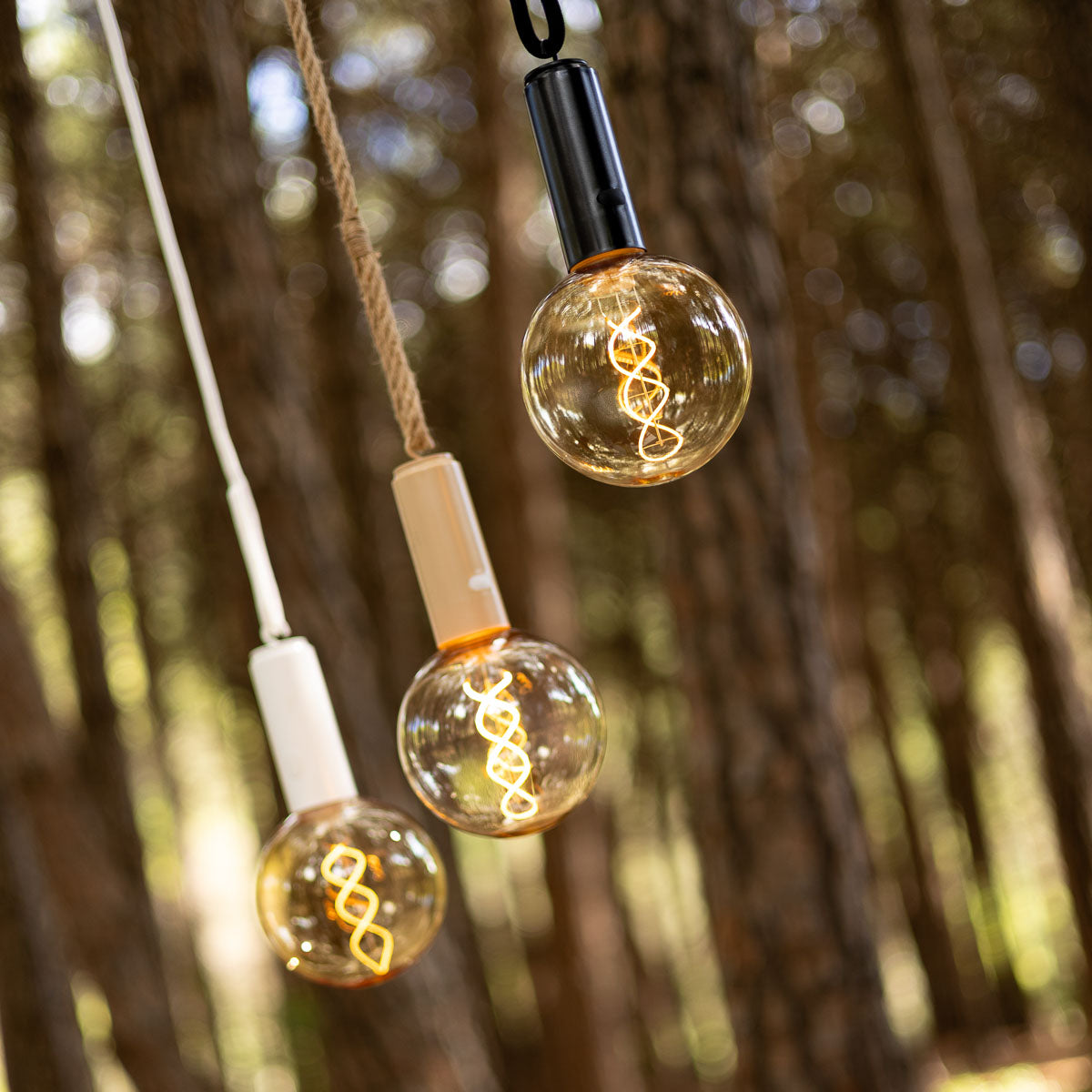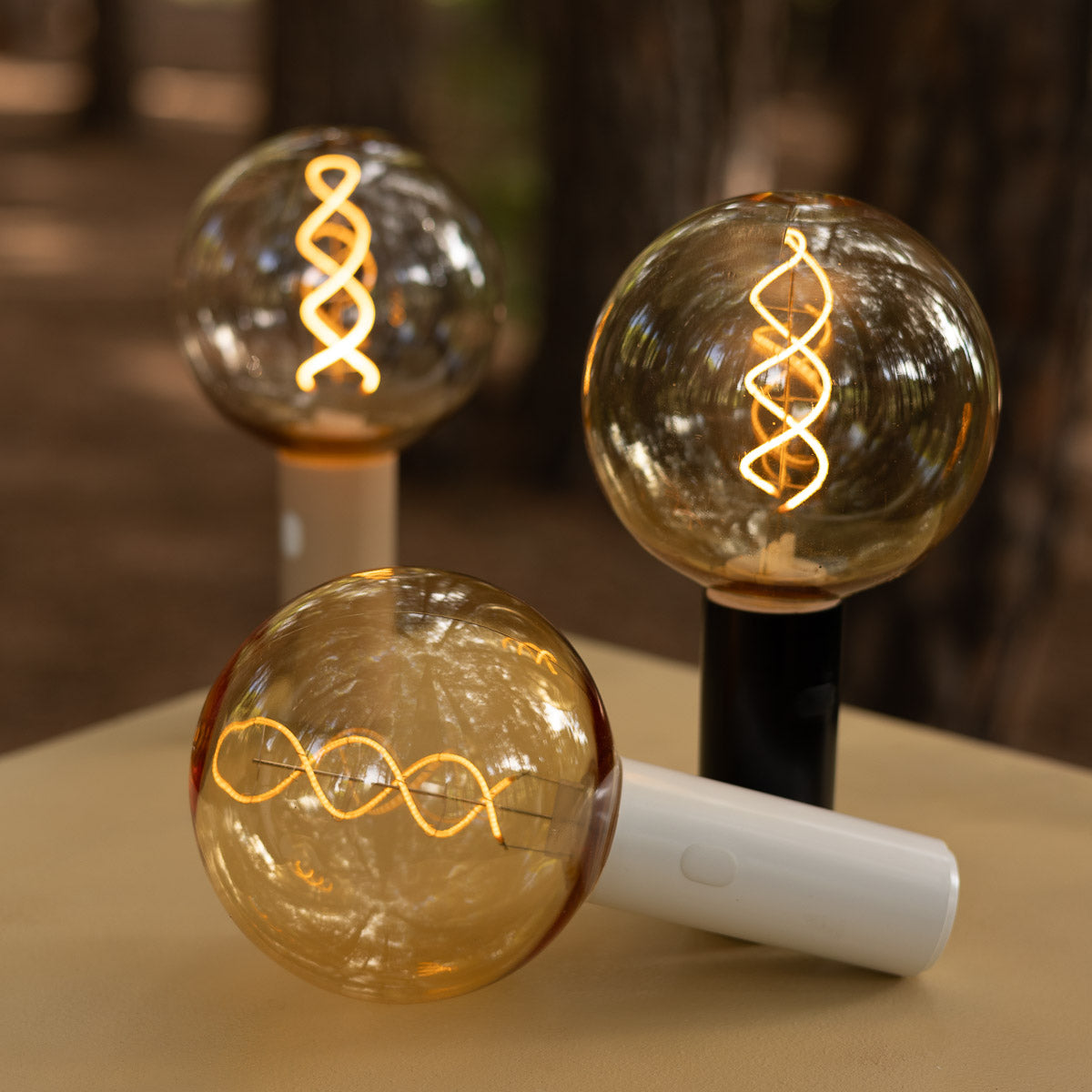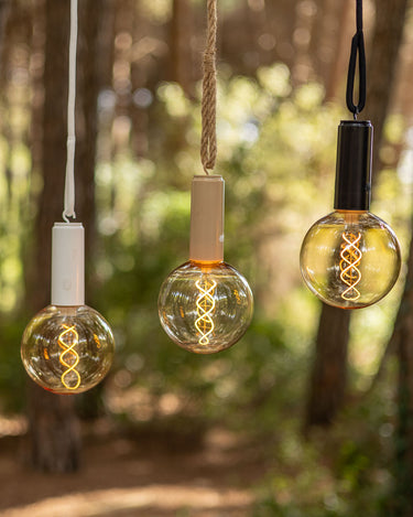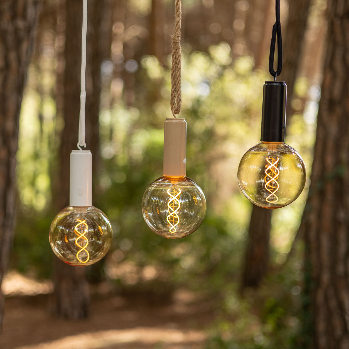 De draagbare, snoerloze vintage gloeilamp EDY G125 vereist geen installatie. U hoeft hem alleen maar op te hangen of in de buurt van een metalen oppervlak te plaatsen. Dankzij de magnetische voet blijft hij dan plakken. Het bevat een zeer heldere LED-gloeidraad en de kunststof coating die op gerookt glas lijkt, is zeer sterk en bijna onbreekbaar. Inclusief metalen haak om het op te hangen en een touw van twee meter.