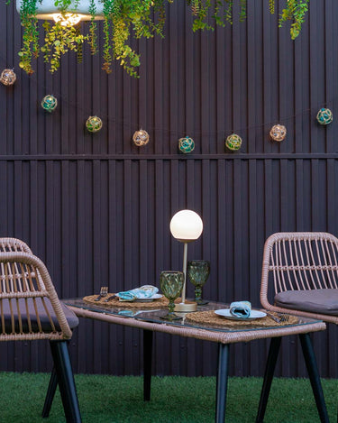 De kleuren van de Middellandse Zee vullen uw huis met licht dankzij de Mare-slinger. Voor op het terras of in de tuin, want je kunt hem zowel binnen als buiten gebruiken. Gemaakt van gevlochten natuurlijke materialen en met schokbestendige bollen. Laat u verlichten door Mare. IP44. 10 geïntegreerde LED-lampen.