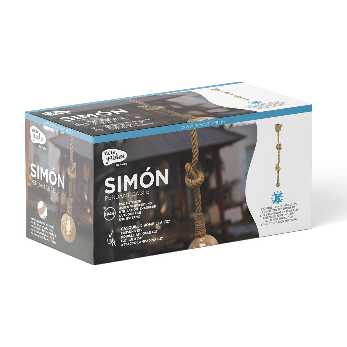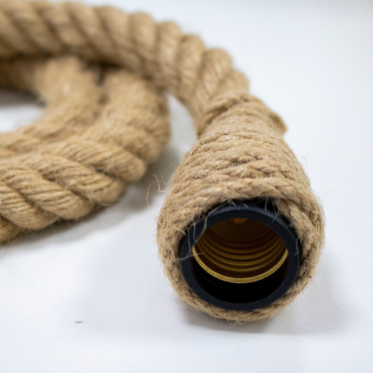 La lámpara colgante con cuerda de yute Simón destaca por su estilo vintage. Lleva una cuerda de 1 m forrada en fibra natural. Puedes regular su altura haciendo simples nudos.