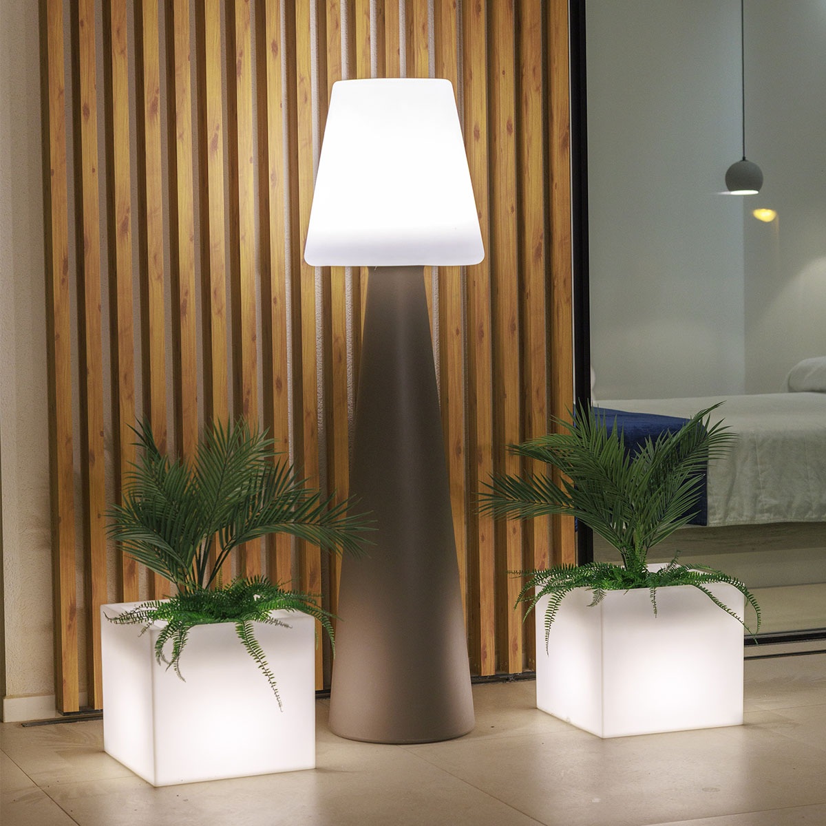 De Lola 165 POP is ongeveer 165 cm hoog en is gemaakt van polyethyleen, een lichtgewicht, slagvast materiaal dat geschikt is voor zowel binnen- als buitengebruik. Hij werkt op een geïntegreerde oplaadbare batterij en is voorzien van een LED-systeem met instelbare intensiteit en kleurtemperatuur. Een afstandsbediening wordt meegeleverd. De lamp is verkrijgbaar in zes verschillende kleuren, zodat hij perfect te combineren is met andere producten uit de LOLA-collectie: antraciet, bordeauxrood, cement, olijfgroen, mosterdgeel en taupe.