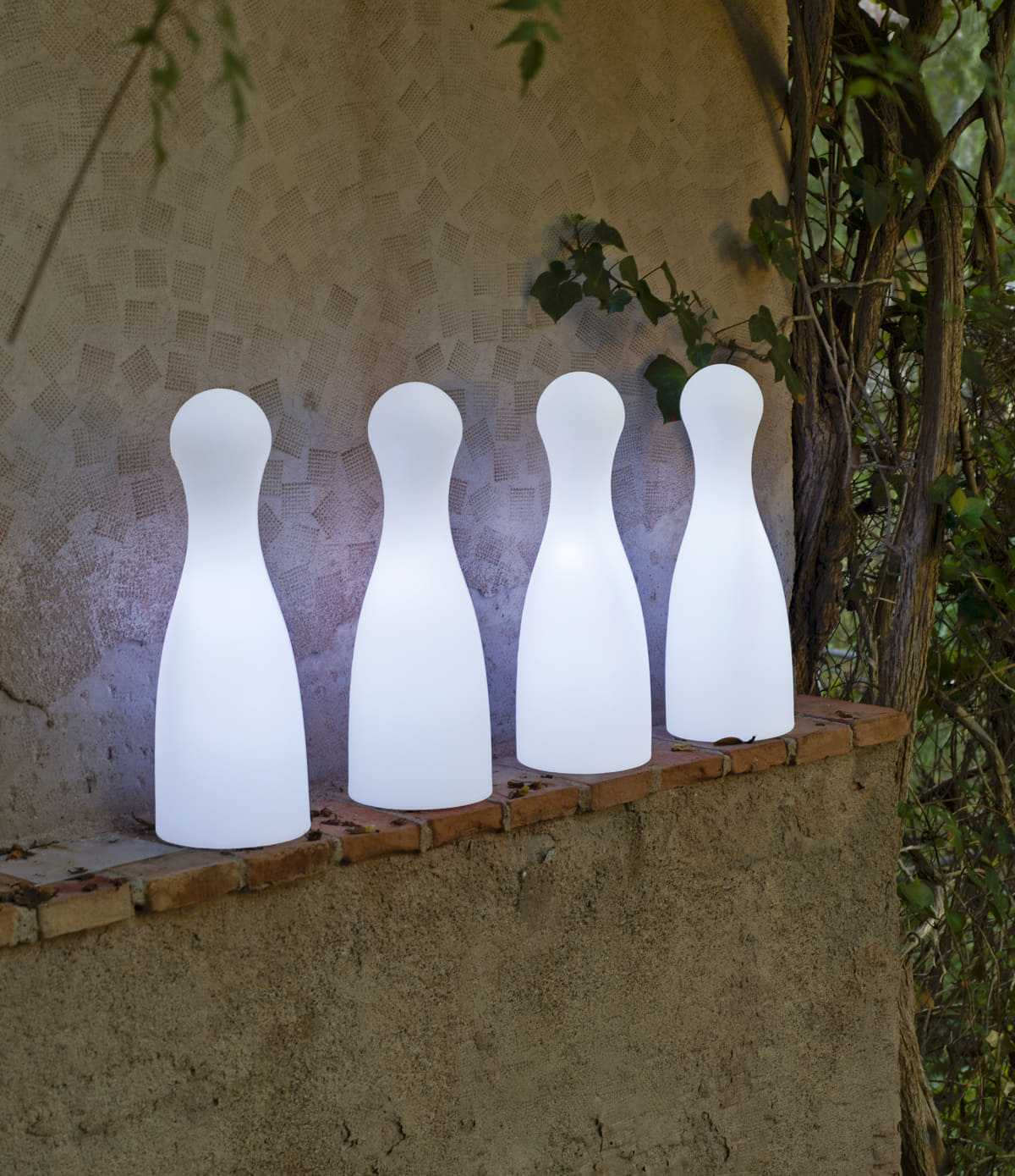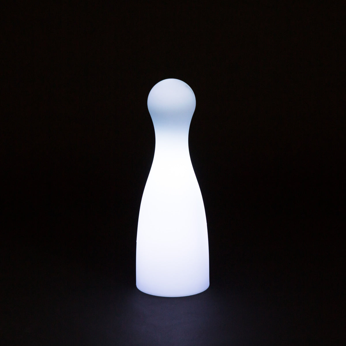 Verlicht je avonden met de leuke POL bowlingpinlamp. Deze lamp is gemaakt van polyethyleen en is verkrijgbaar met een bekabelde aansluiting en warm licht, of met zonne-energie en een oplaadbare batterij, met RGB- en wit licht. Geef je buitenruimte een uniek tintje met POL. Verlicht je leven!