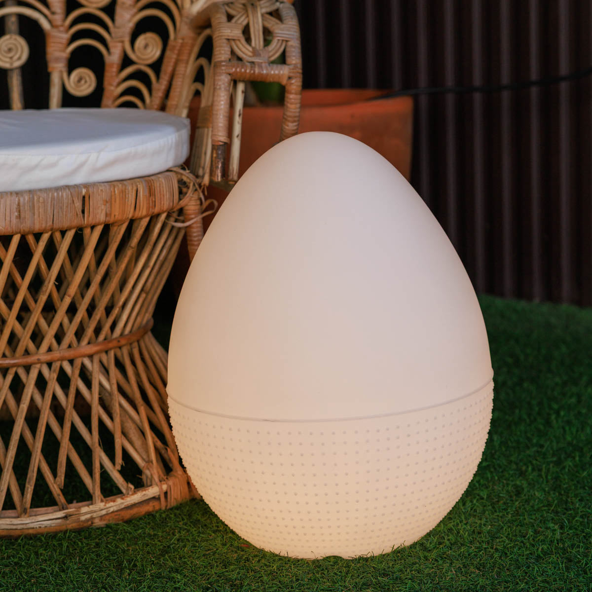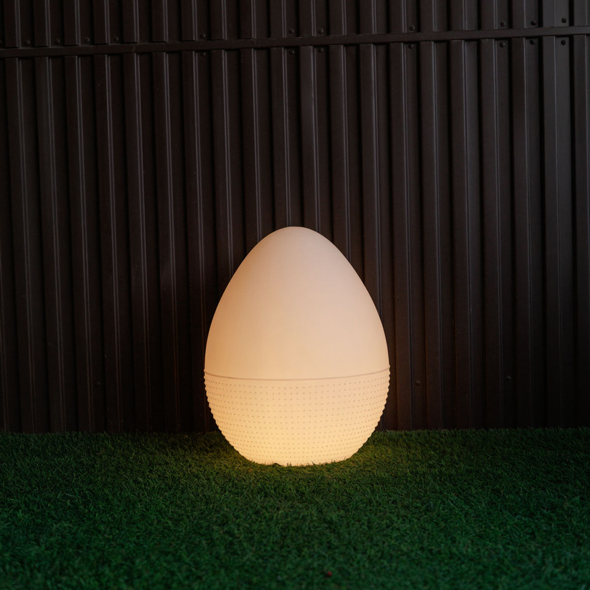 Verlicht uw nachten met de leuke OVO EGG LAMP. Deze lamp is gemaakt van polyethyleen en is verkrijgbaar met een bekabelde aansluiting en warm licht of met zonne-energie + oplaadbare batterij met RGB- en witlichtopties. Geef uw buitenruimte een uniek tintje met OVO. Verlicht je leven!