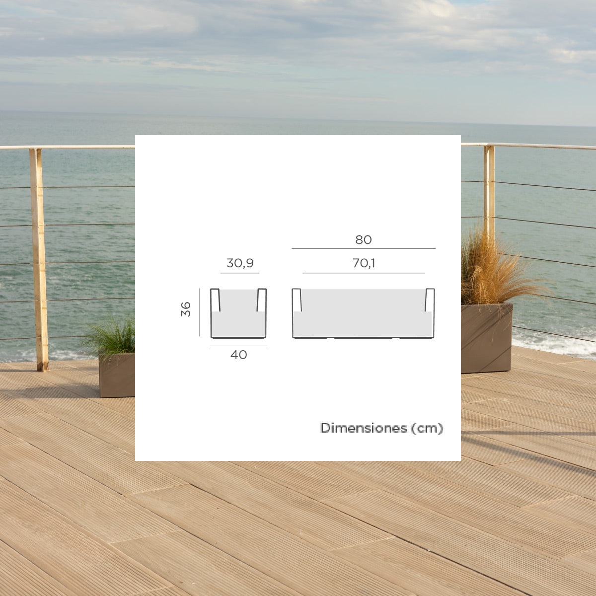 De Jara 80 plantenbak (80x39x36 cm) is een lage, rechthoekige plantenbak.