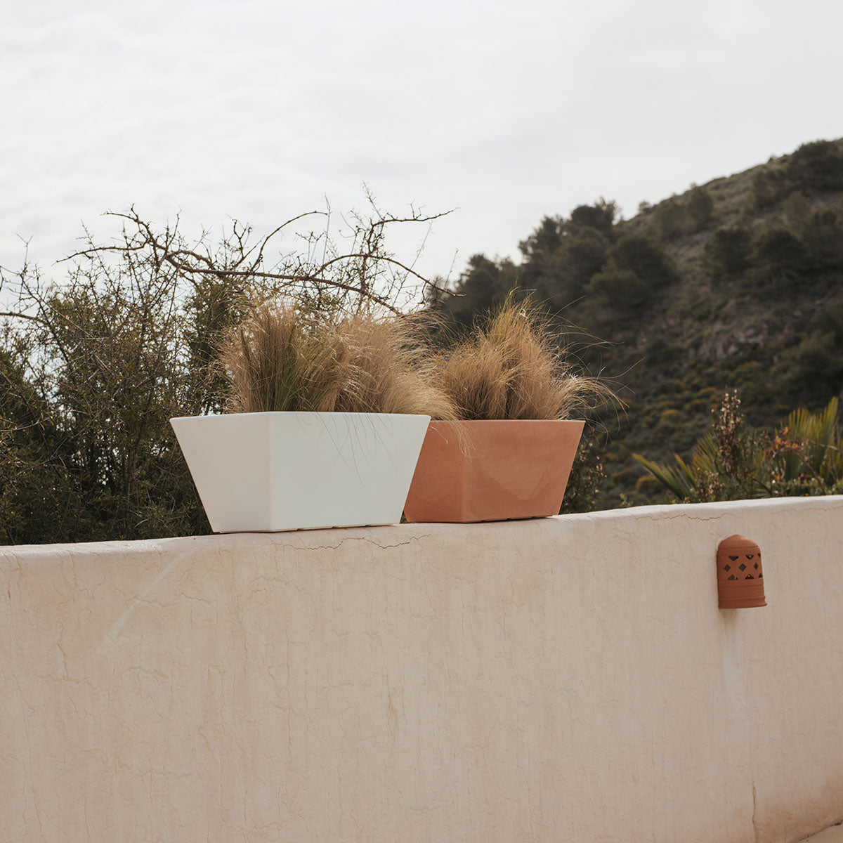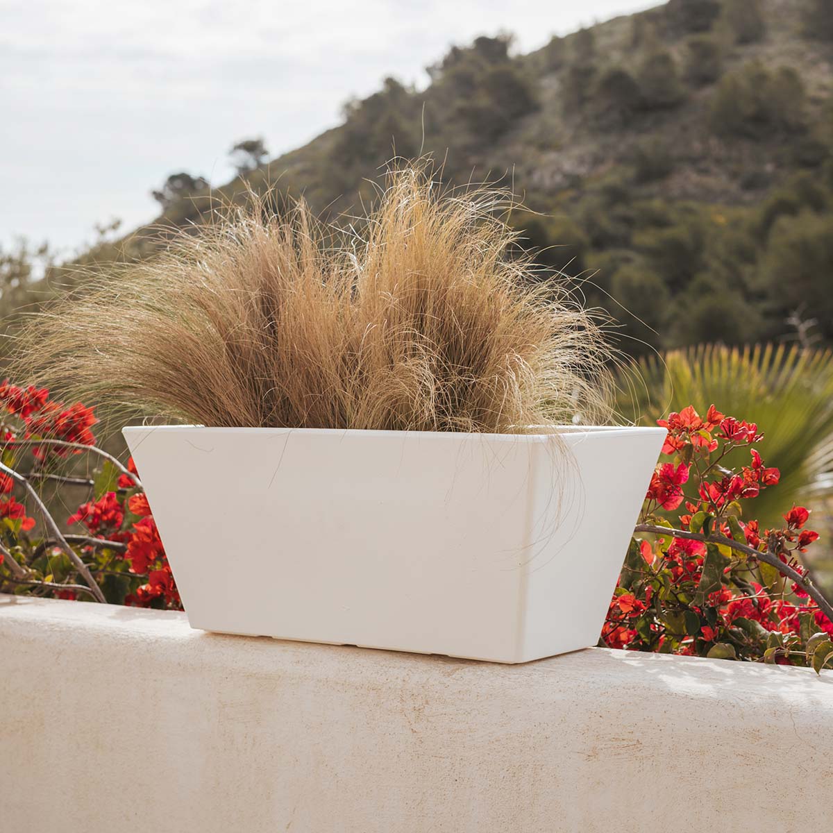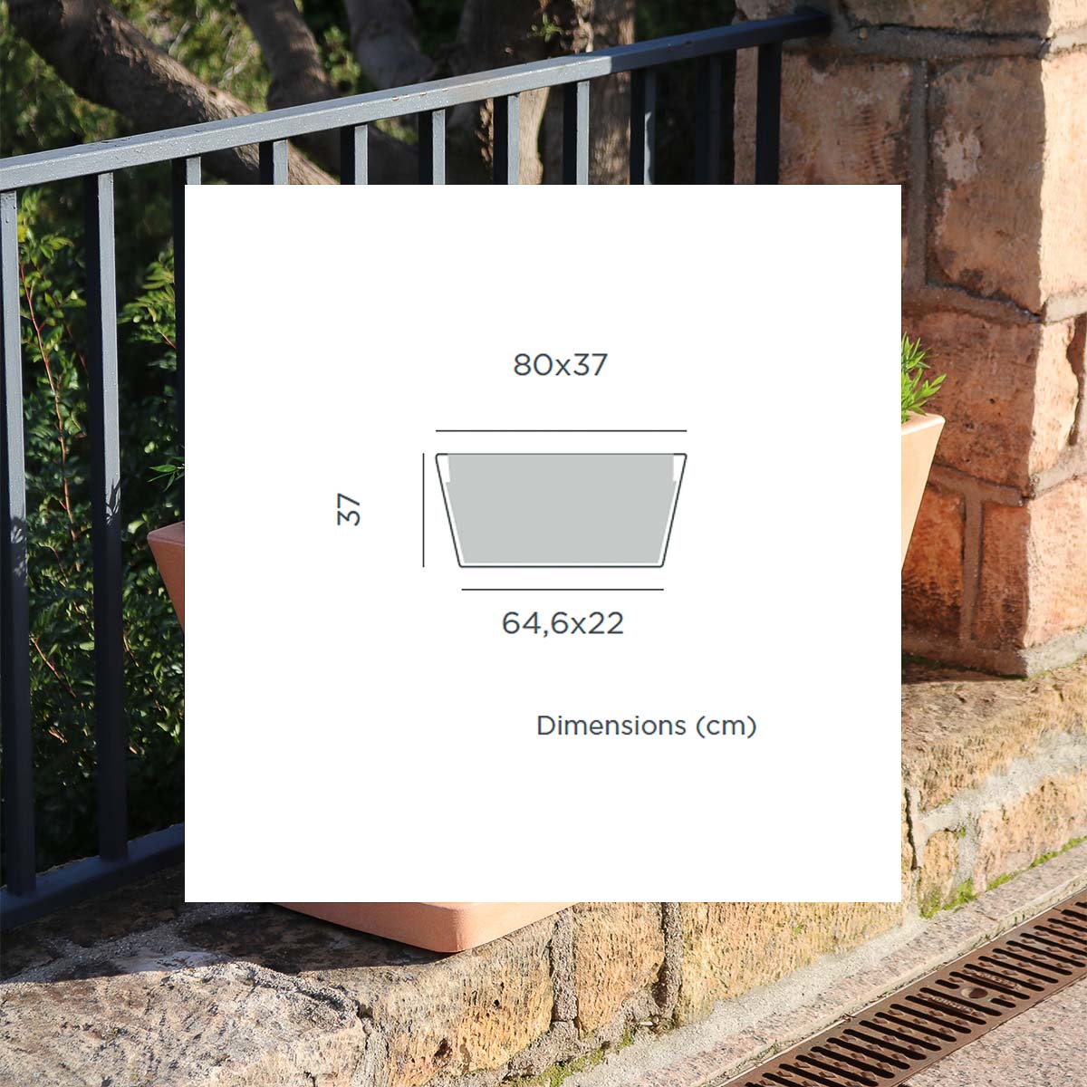 Jasmine 80 (80x37x37 cm): Dit is een rechthoekige en trapeziumvormige plantenbak. Verkrijgbaar in verschillende maten en kleuren. Ideaal voor elke buitenruimte, terras of patio.