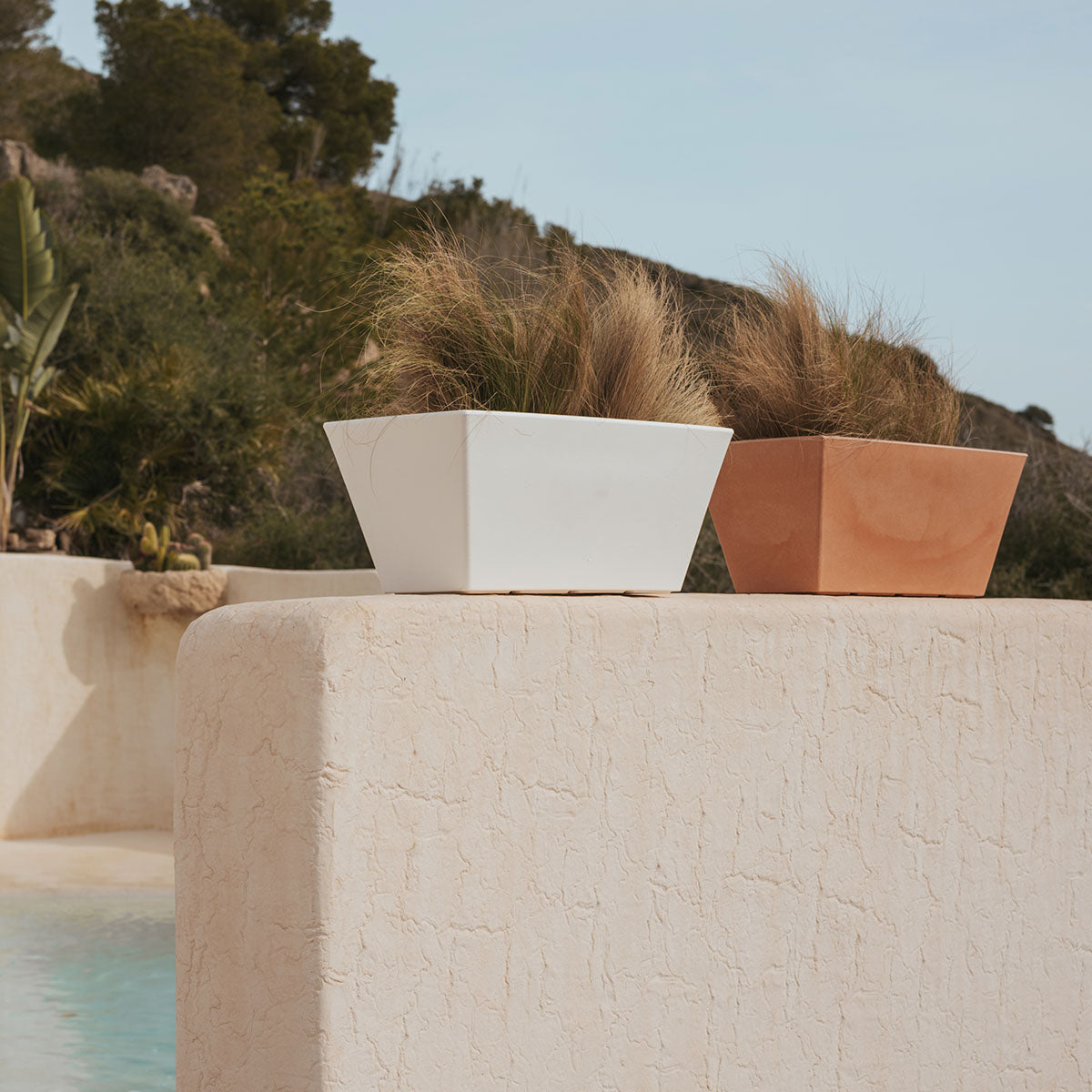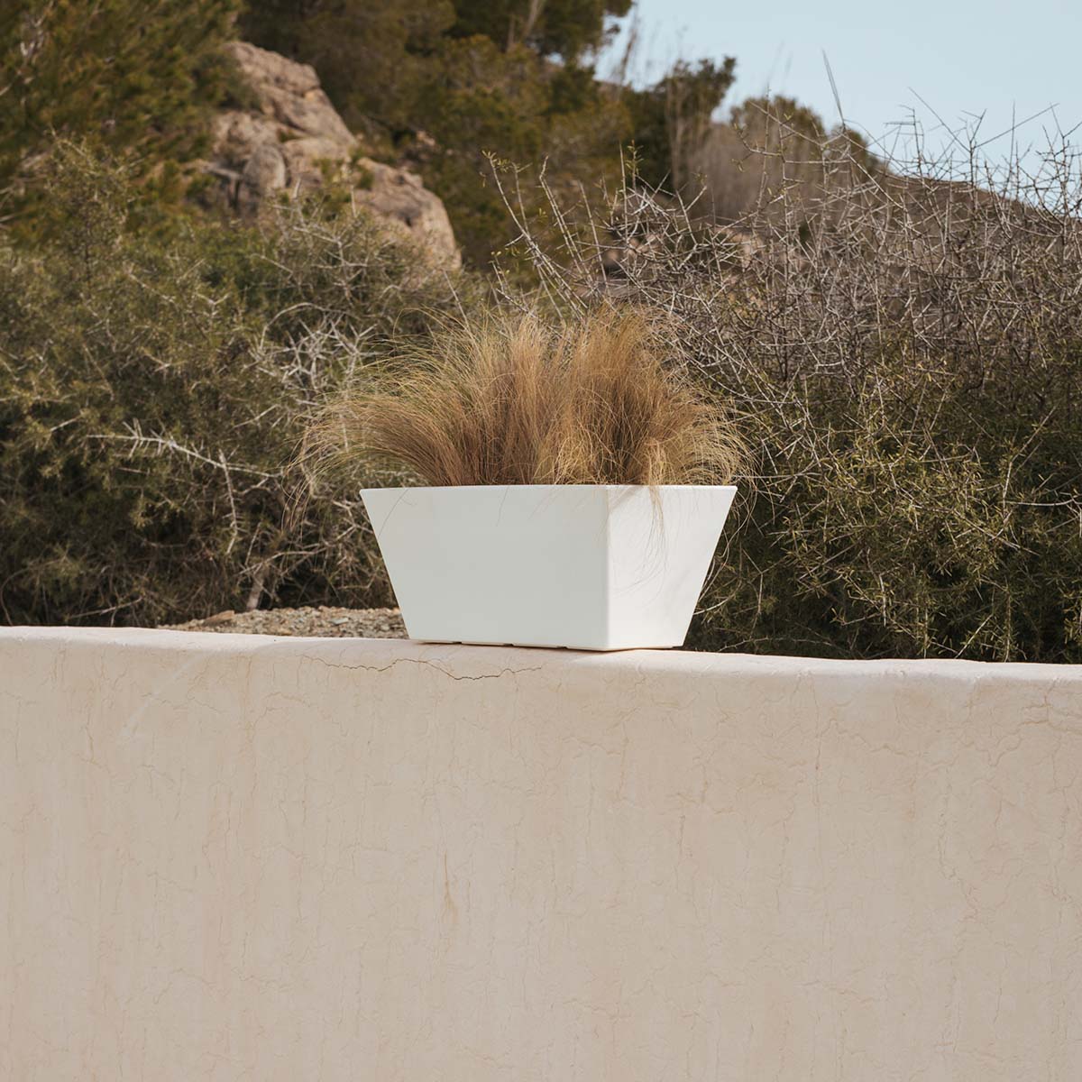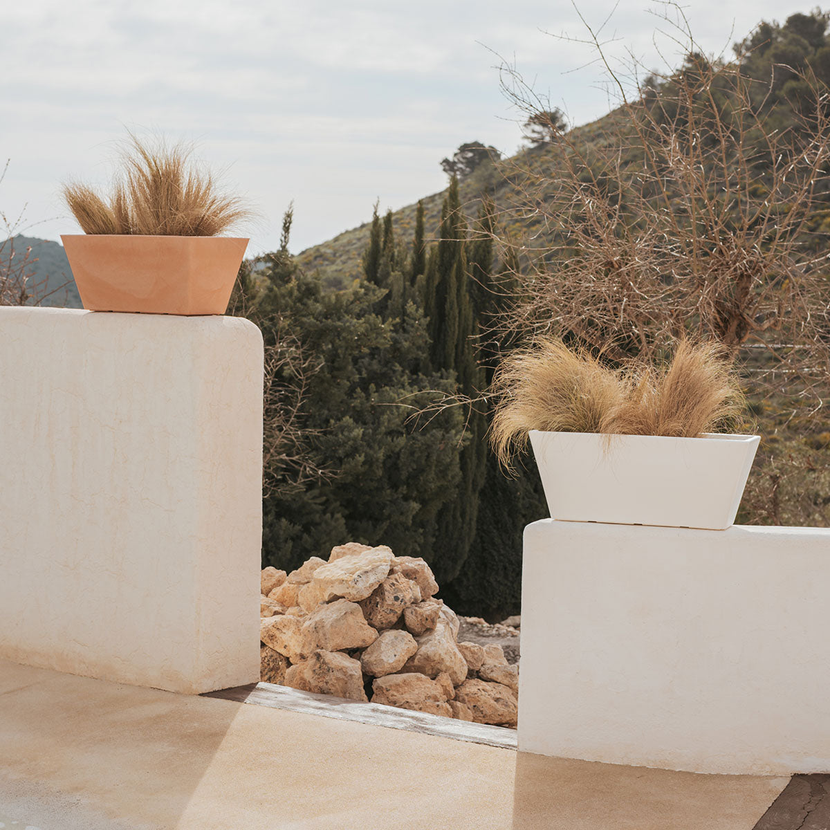 Jasmine 80 (80x37x37 cm): Dit is een rechthoekige en trapeziumvormige plantenbak. Verkrijgbaar in verschillende maten en kleuren. Ideaal voor elke buitenruimte, terras of patio.